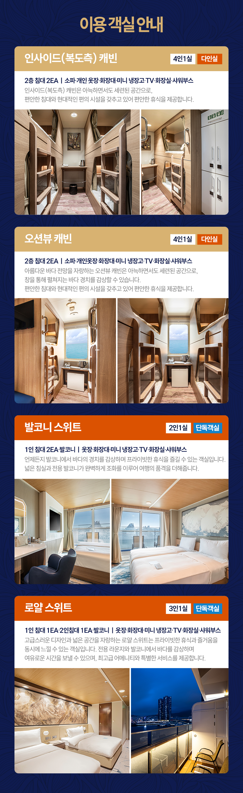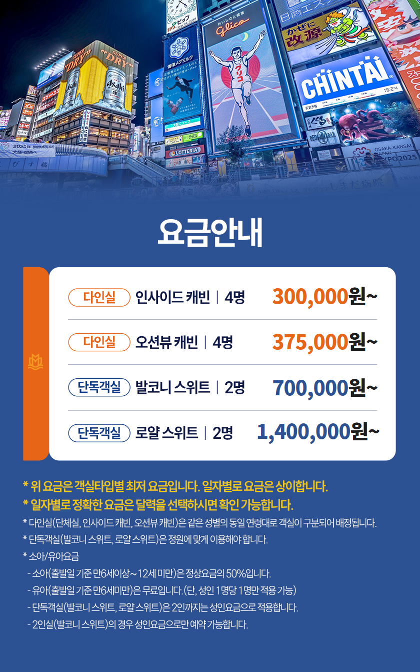 - 발코니스위트객실 등급 이상은 정원 미만으로 예약 할 경우, 룸차지가 발생합니다.