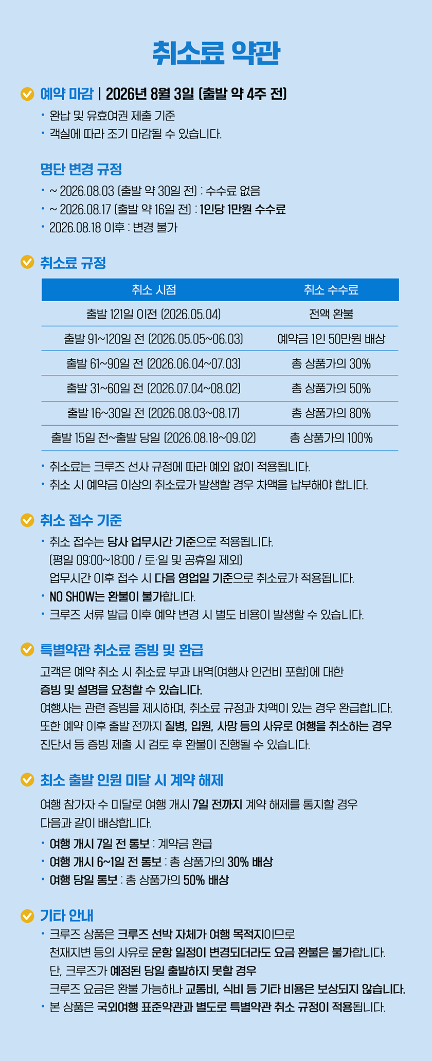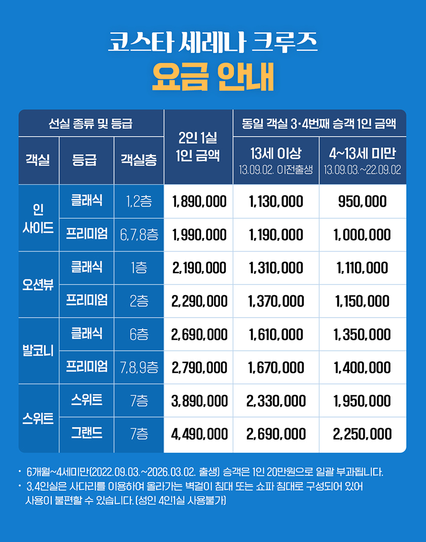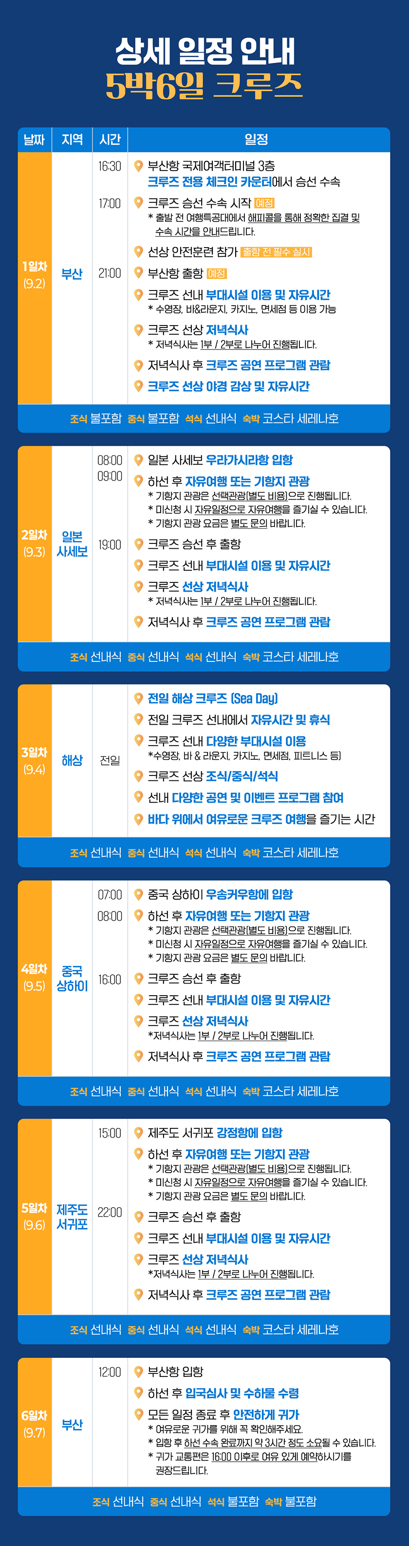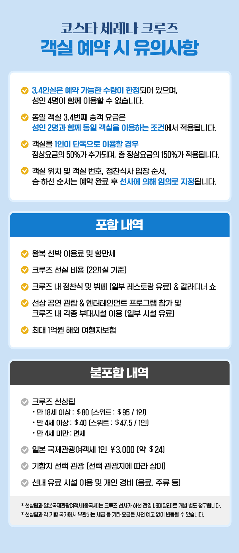 ※ 선사의 규정에따라 전액 결제를 해야 합니다.